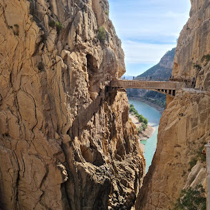 Road attached to a gorge with a length of 3 km that has long sections and a width of just 1 meter.