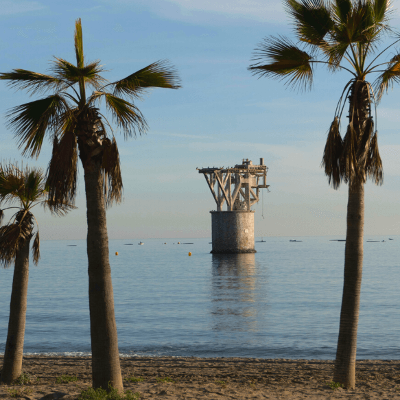In the sea it has an old structure that was used to carry the material extracted in the mines to the ships.