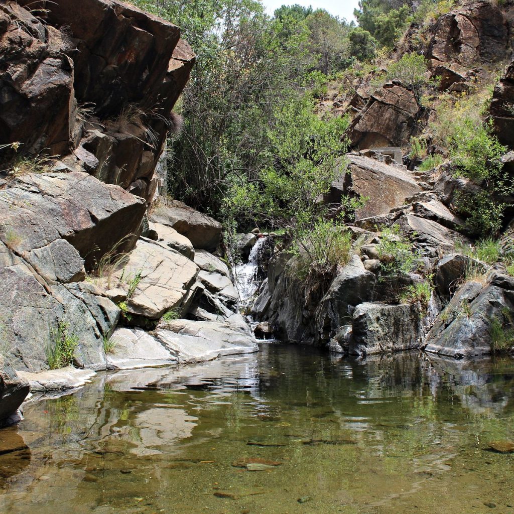 A small natural pool, with a small waterfall in a super quiet place, just below the Ojén cemetery